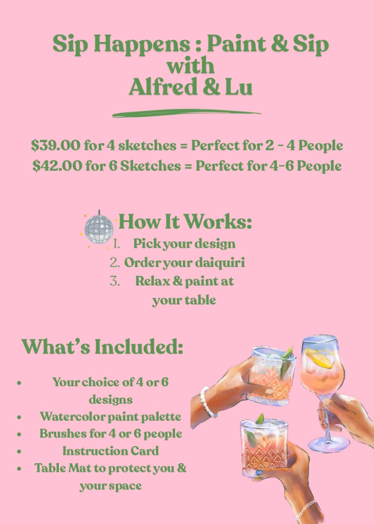 Join us at Zach’s Daiqs for our engaging Paint & Sip sessions, where creativity meets camaraderie. Enjoy step-by-step guided painting sessions paired perfectly with our signature daiquiris. Whether you’re an artist or a beginner, our relaxed atmosphere ensures a memorable experience for everyone.